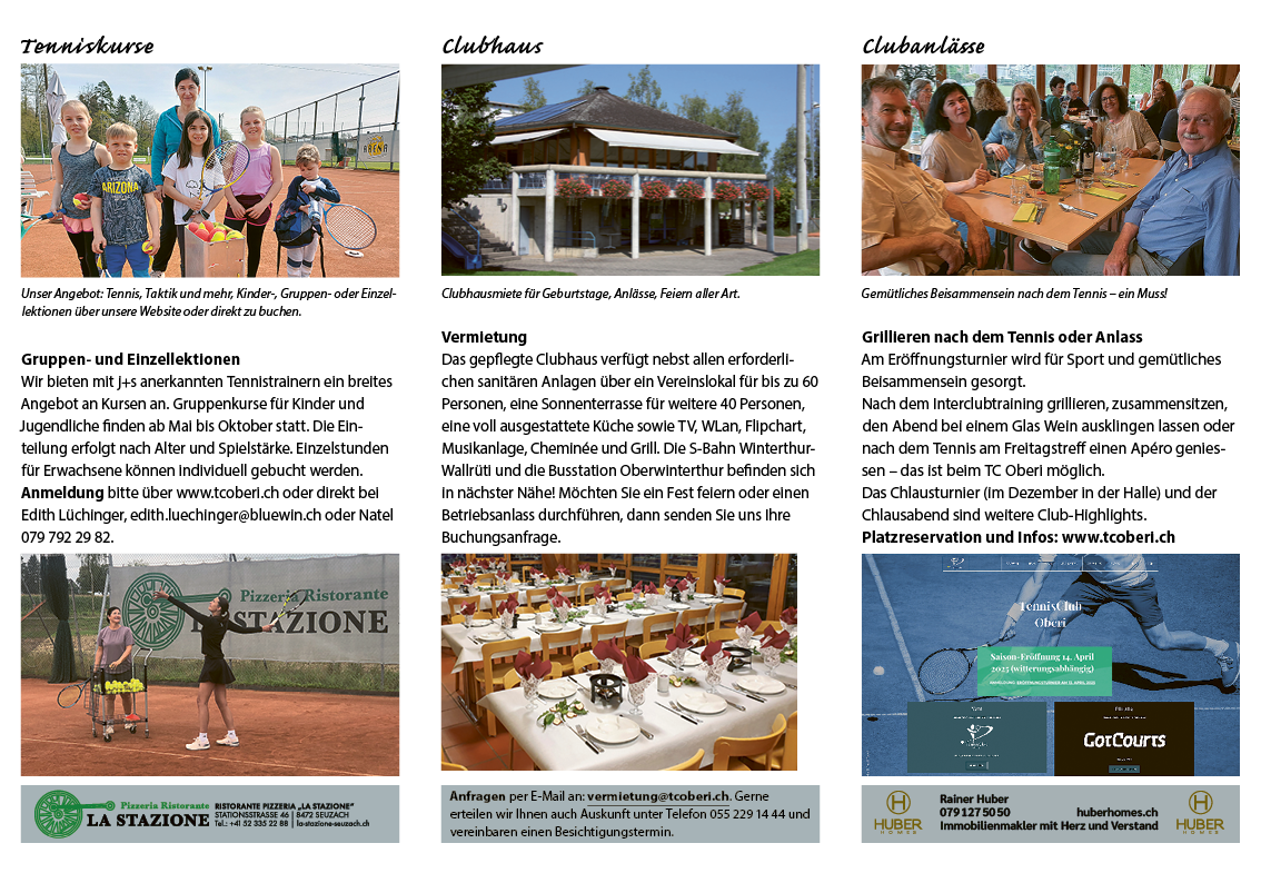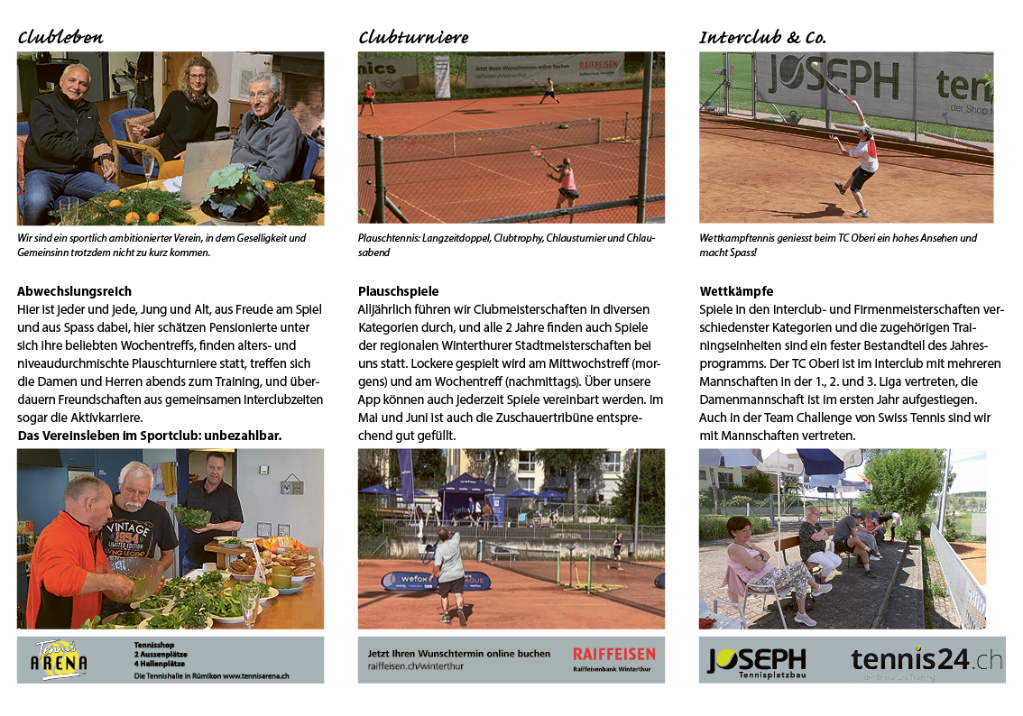 Unsere schöne Tennisanlage am Rande von Oberwinterthur. Bereits seit vielen Jahren fanden viele Aktivitäten und spannende Begegnungen auf der Anlage statt! Schöne Erinnerungen bleiben, viele Erlebnisse werden noch kommen. Nächstes Jahr wird das 50jährige Clubbestehen gefeiert!